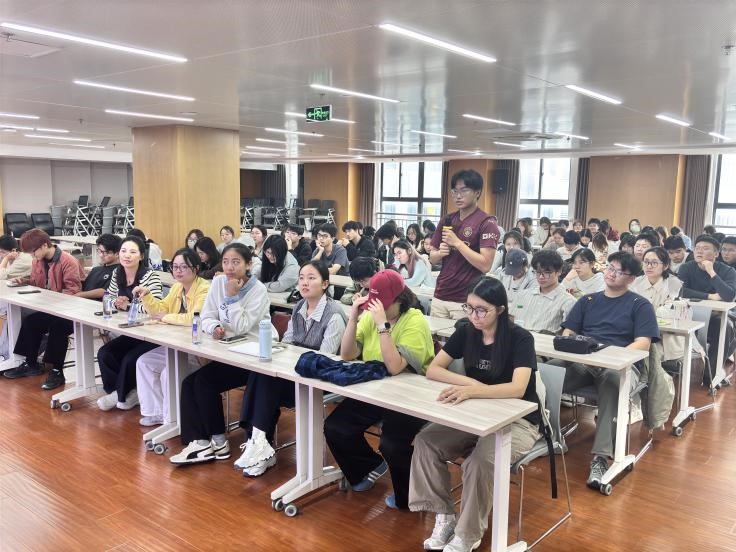 In the ensuing discussion, faculty and students engaged in a lively exchange on the topic “How AI technology can better serve human resource management.” The dialogue deepened understanding of the concept that Party building guides technological innovation, and technology serves enterprise needs.