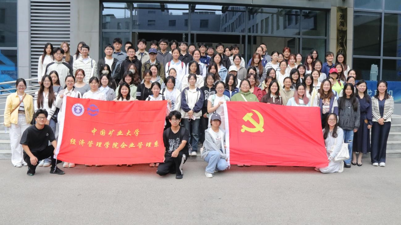 To thoroughly implement the Party’s education policy in the new era and advance the cultivation of interdisciplinary talents, the Department of Business Administration Party Branch organized a field study and Party-building collaborative activity on the morning of October 10. Led by Party Branch Secretary Yue Ting and faculty member Zhang Jiexuan, more than 80 students visited the China University of Mining and Technology Industry–Education Integration Demonstration Base at the Huaihai Human Resources Service Industrial Park. Liu Xin, Deputy General Manager of Huaihai Human Resources Service Industrial Park, and Liu Yinxue, Director of the Operations Center, accompanied the group throughout the event.