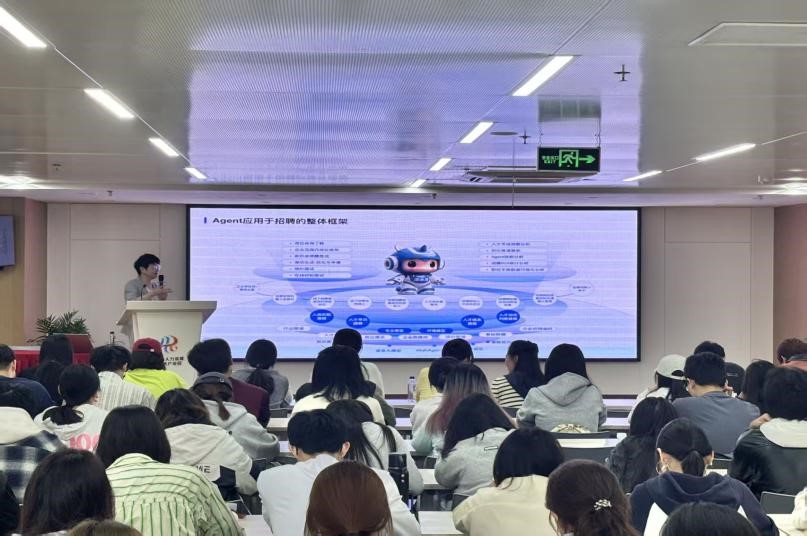 Following the tour, Li Qinfen, Deputy General Manager of Huaihai Talent Group, delivered a mobile classroom lecture titled “Big Data and Intelligent Decision-Making in Human Resource Management: Application and Practice of the ‘Huai Xiaocai’ AI Recruitment Platform.” She explained that the research and application of the Huai Xiaocai AI platform exemplify the national call to “empower the real economy through science and technology” and represent a concrete integration of human resource management with artificial intelligence.